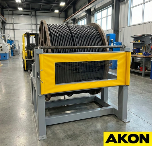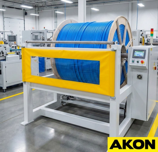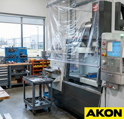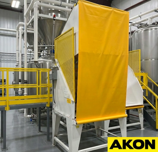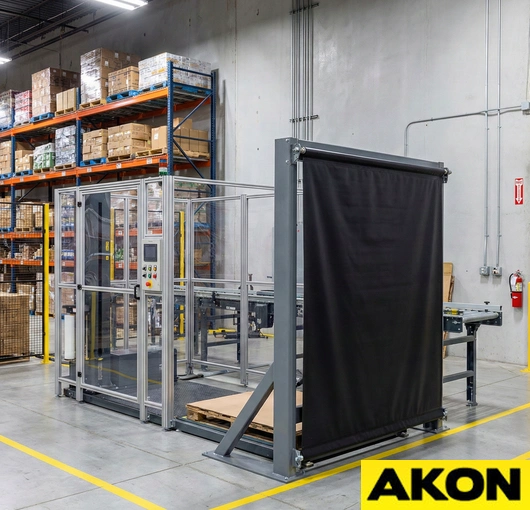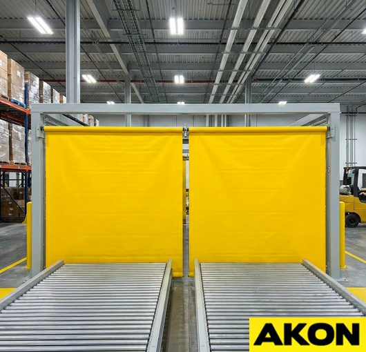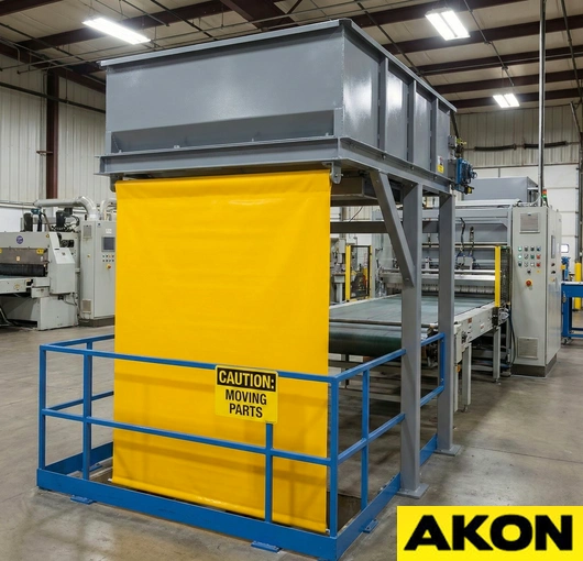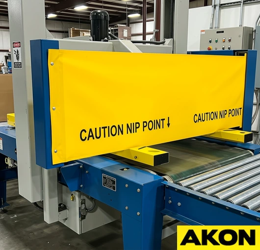 The AKON industrial roll up guards are a multipurpose safety device. The roller has constant tension on it as to keep the shade tight as it extends and retracts. Roll-up machine guards help prevent operators from getting their hands or feet inside the machines that they are working near. The guarding also contains flying debris, which could potentially injure someone. Rated for both low- and high-duty applications, the retractable machine covers have countless uses.