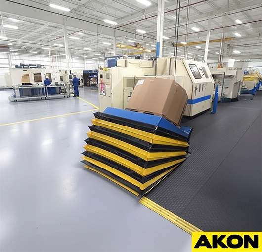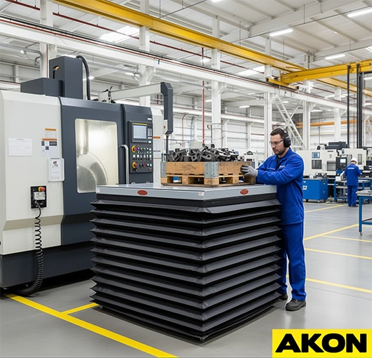 Lift Table Skirts are a long-standing solution for providing protection to dangerous scissor arms. AKON provides these lift table guards to manufacturing plants all over the world. The AKON industrial lift table skirts are made from heavy-duty 22-ounce fire retardant vinyl. The lift table skirting protects operators from the hazardous pinch points inside of scissor lift tables. The lift table guarding is quick to install, and it is available in almost any size.