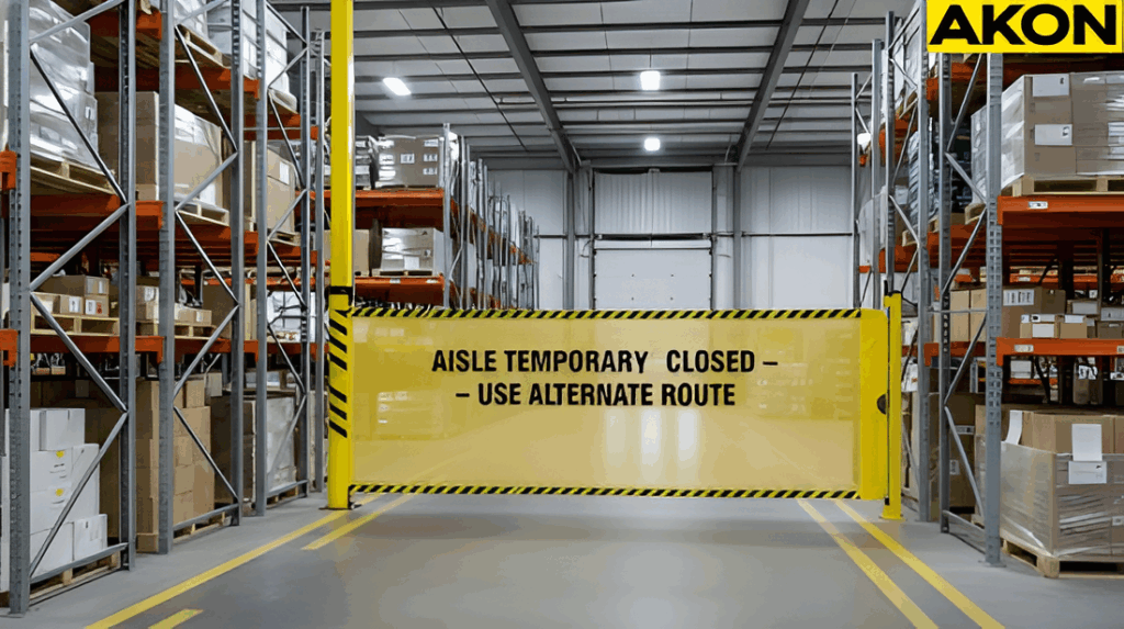 • Useful in forklift routes and shared traffic zones. The barrier helps signal when an area is restricted without permanently blocking workflow.