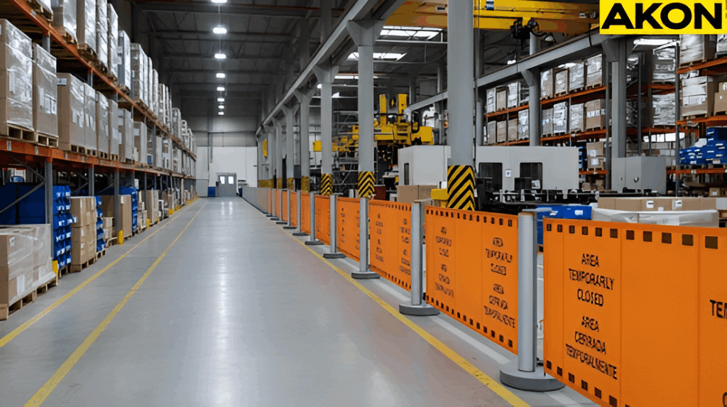 Warehouses guide visitor foot traffic by defining clear walking routes using physical barriers that show where visitors should stay. Industrial retractable barriers are commonly used to keep routes easy to follow in active environments.